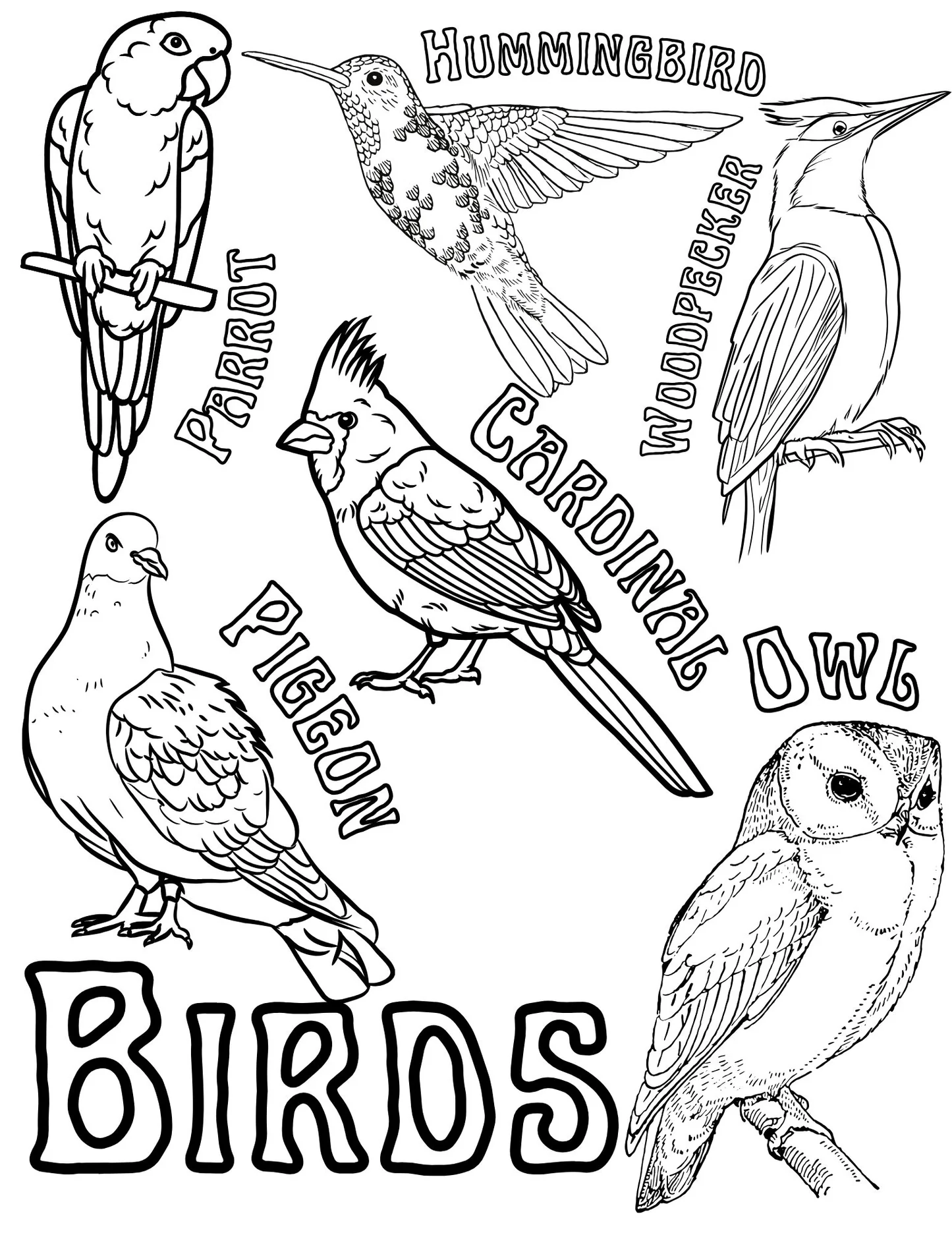 Birds Coloring Page TheHackyandbirdshop