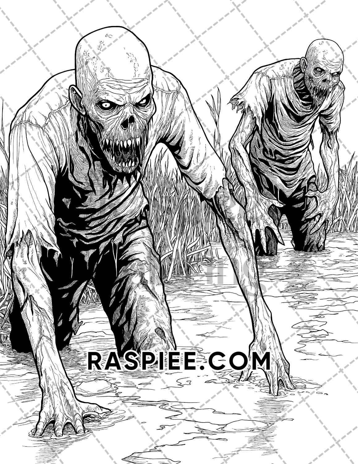 Scary Zombies Halloween Adult Coloring Pages Printable PDF Instant Dow RASPIEE