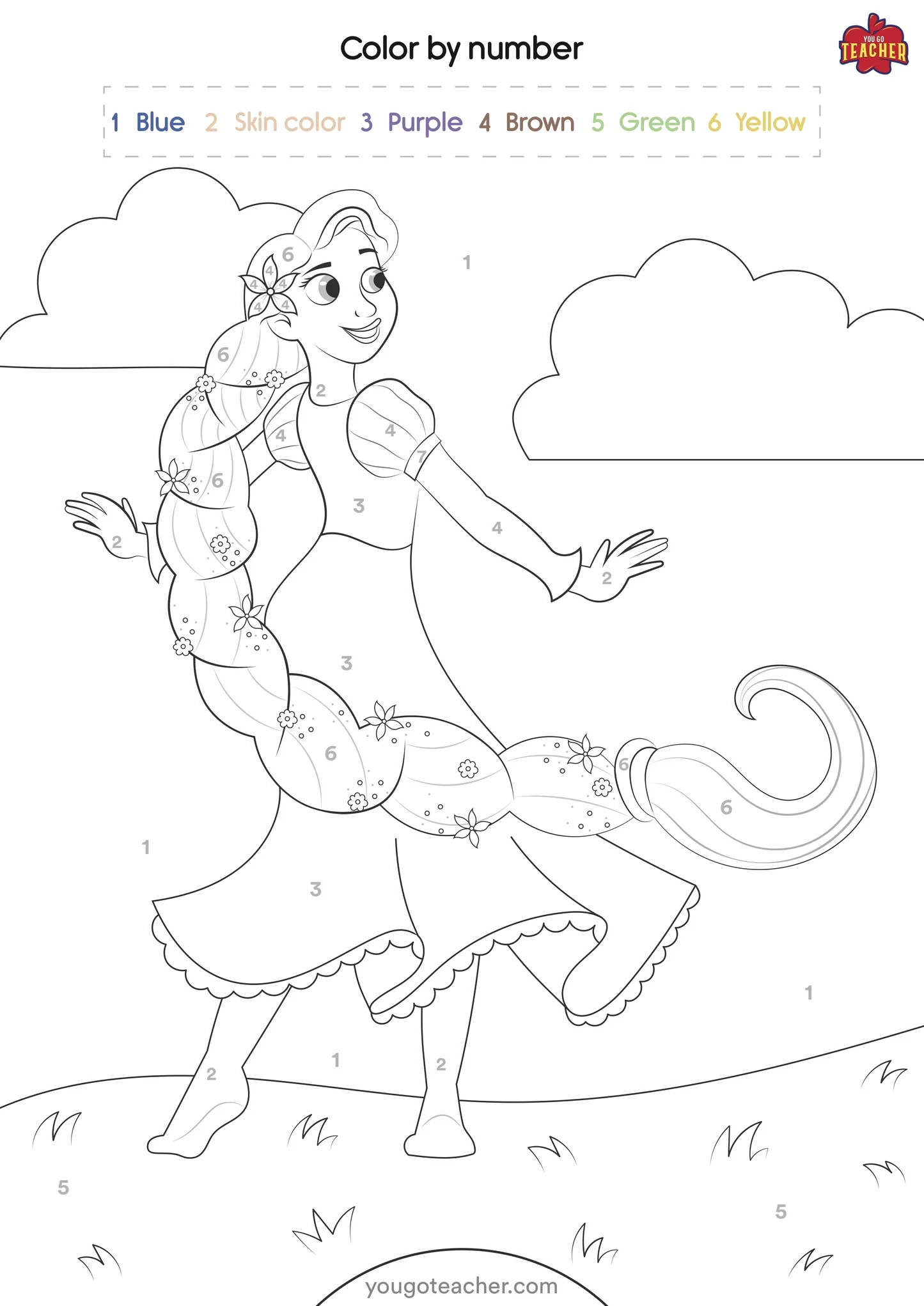 Color By Number Disney Princesses Printable Number Coloring Worksheets