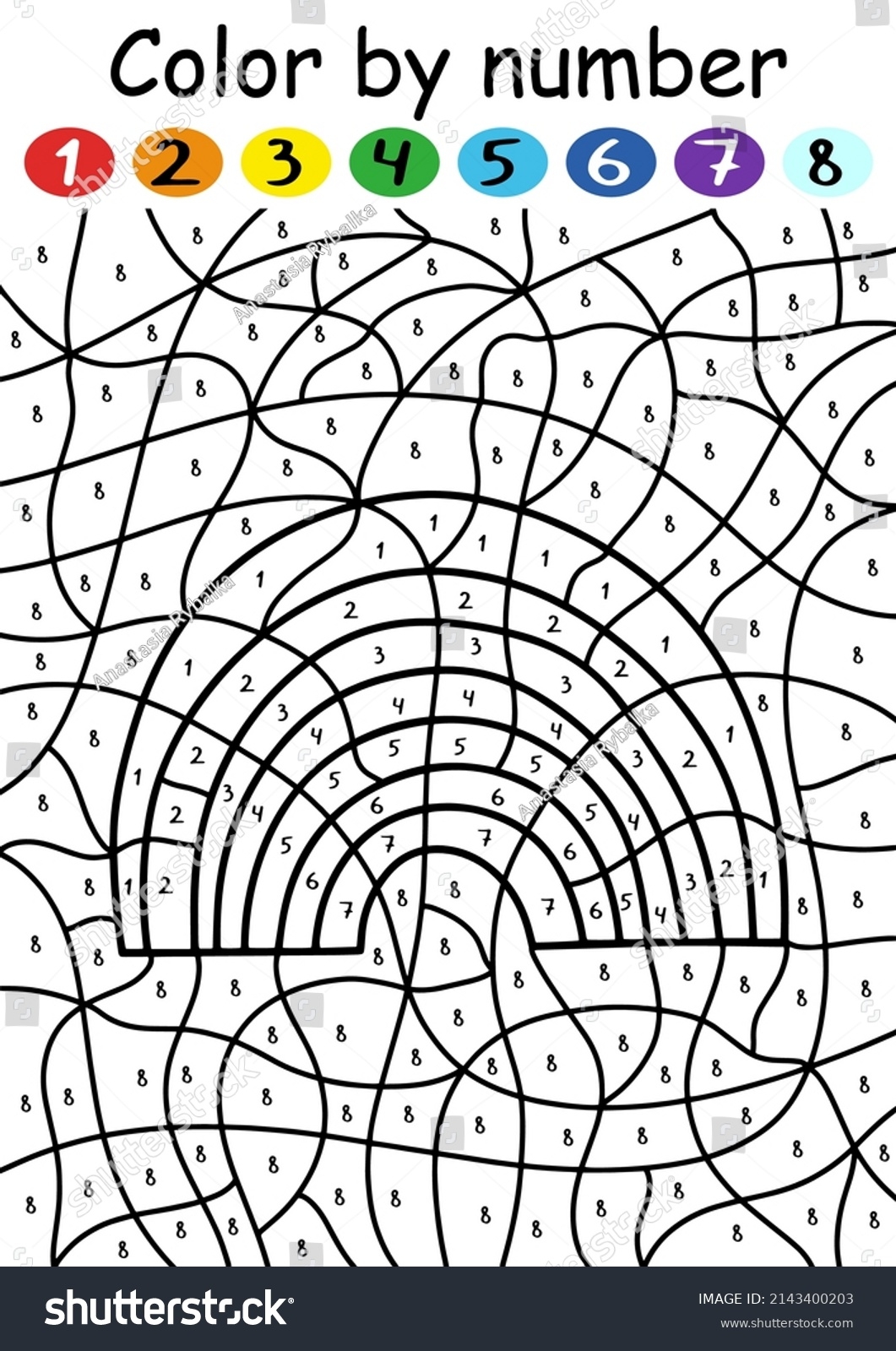 Rainbow Color By Number Game Children Stock Vector Royalty Free 2143400203 Shutterstock